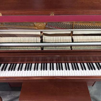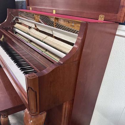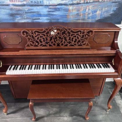 Details: Hobart M. Cable pianos have been making pianos in the USA since the late 1800s. Known for their responsive actions and warm tones. This French Provincial style piano with fancy legs, carved music rack, and matching bench will have everyone turning heads. This piano is in a satin hand-rubbed cherry wood finish.