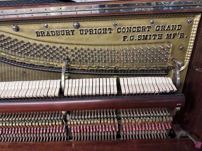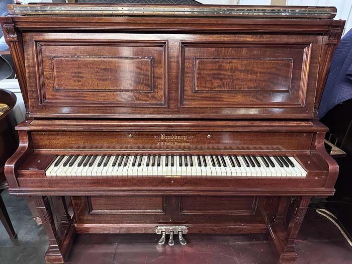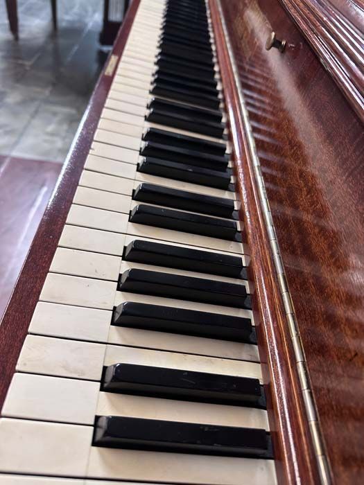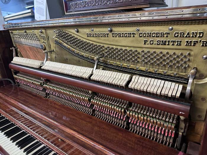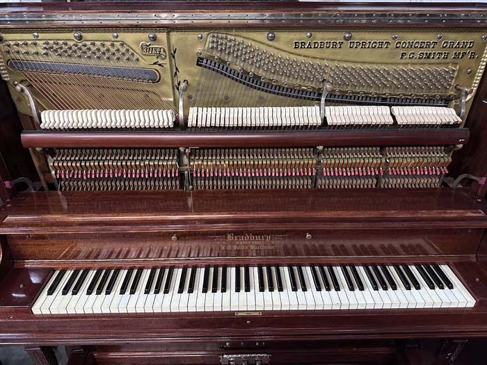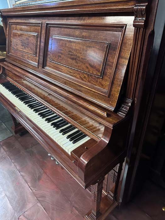 Details: This American-made upright piano stands 58" tall. Has new hammers, re-worked action, new strings, and has been refinished in rich mahogany semi-gloss tone.