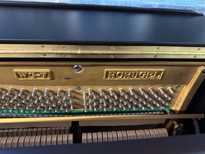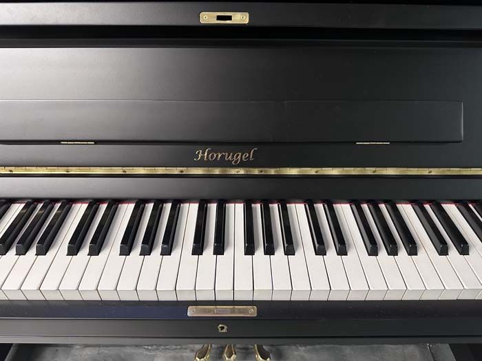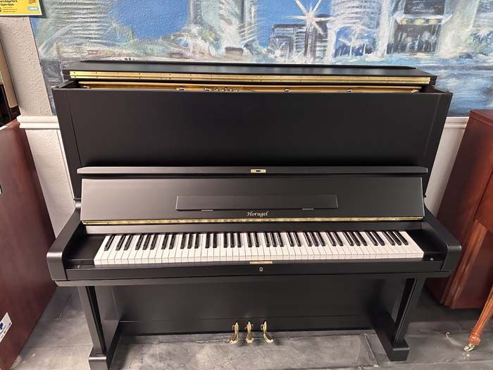 Details: This Horugel professional studio upright sits at 48" tall. With a lighter style action for its size, this piano is perfect for beginners to seasoned piano players. The warm tones and fluid action will have you practicing and playing in no time.