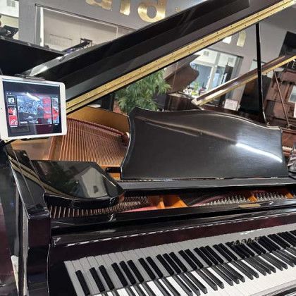 DETAILS: High Gloss Ebony Finish, 6yr warranty, bench, and QRS 3 Pianomation player system installed. Beautiful rich sound and fluid action. Larger 6'1" grand with an effortless player system you can control from any WiFi device.
