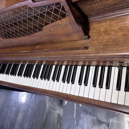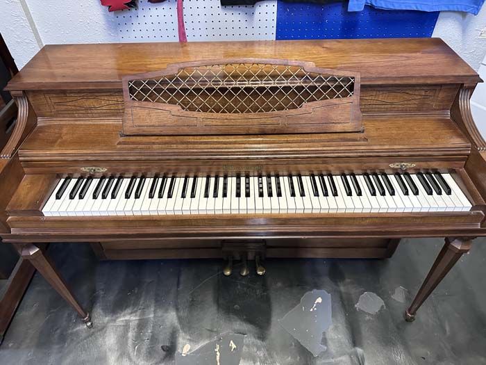 Details: This American-made piano sits at 40" tall. Comes with the original bench. Piano has a lighter action and a bright sound, perfect for beginners and as a practice piano.